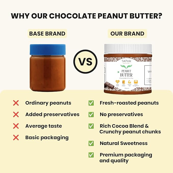 Tatva Healthcare Chocolate Peanut Butter is so testy & made with fresh-roasted peanuts with crunchy texture for authentic nutty flavour and natural goodness. Our whole family eating every morning this Chocolate Peanut Butter with Bread and Tost. If you and your family is real foody Buy Now.