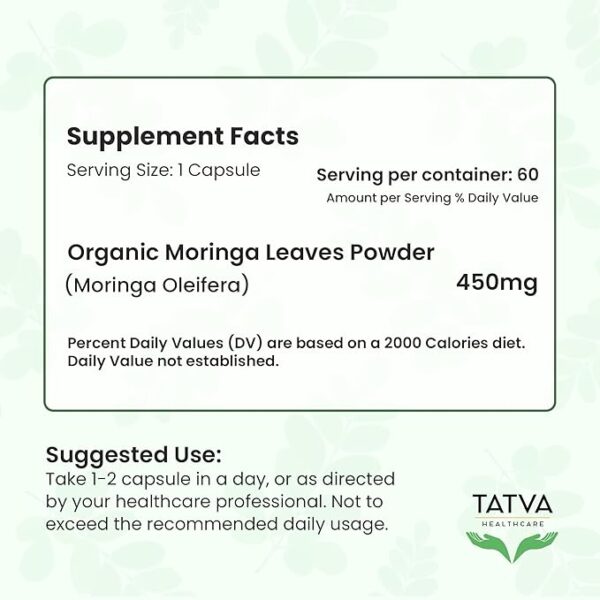 - 🌱 Pure & Trusted Quality – Made with organic moringa leaves only, free from additives, fillers, or preservatives. Manufactured with care to provide a safe and effective dietary supplement for everyday use.